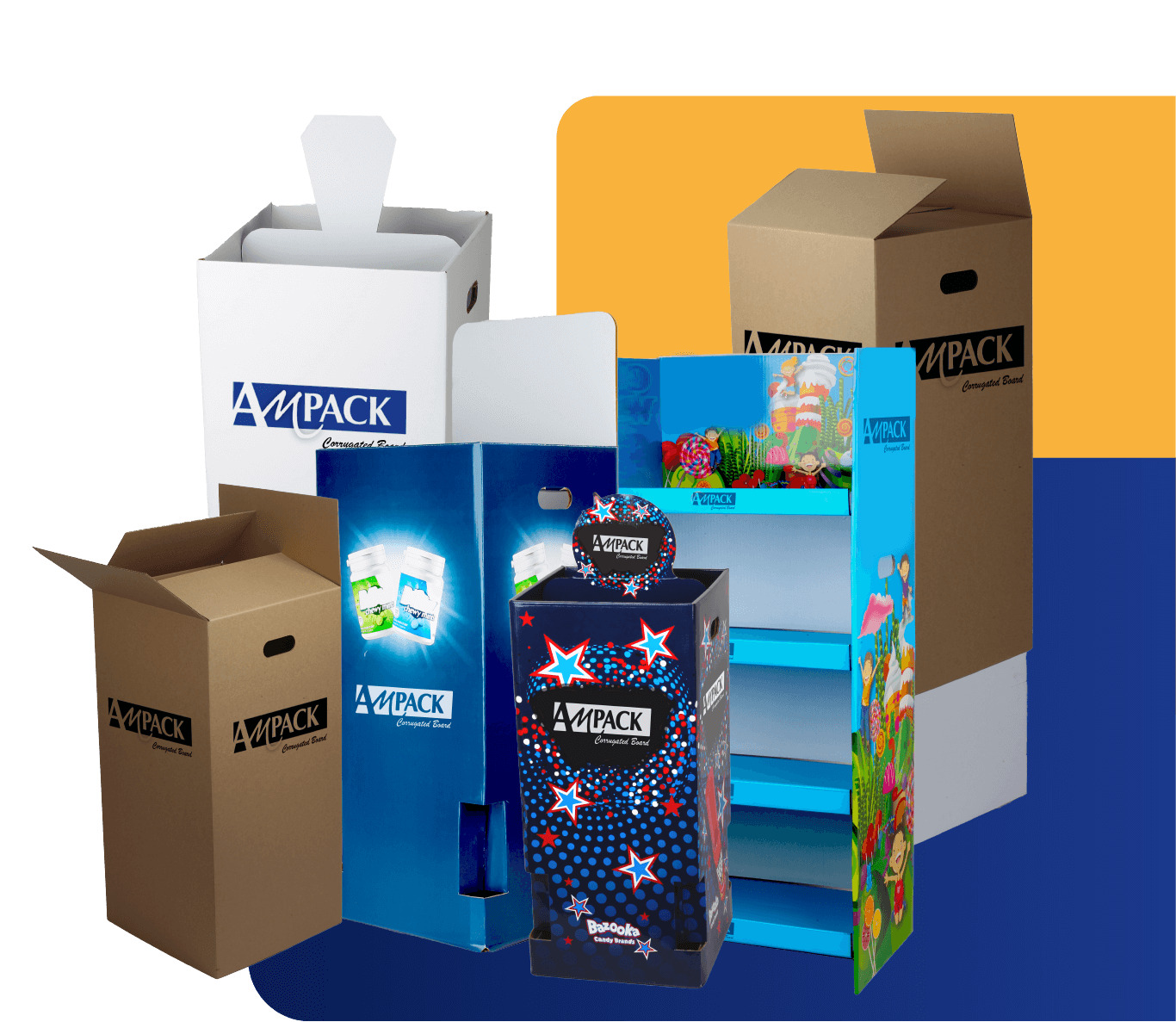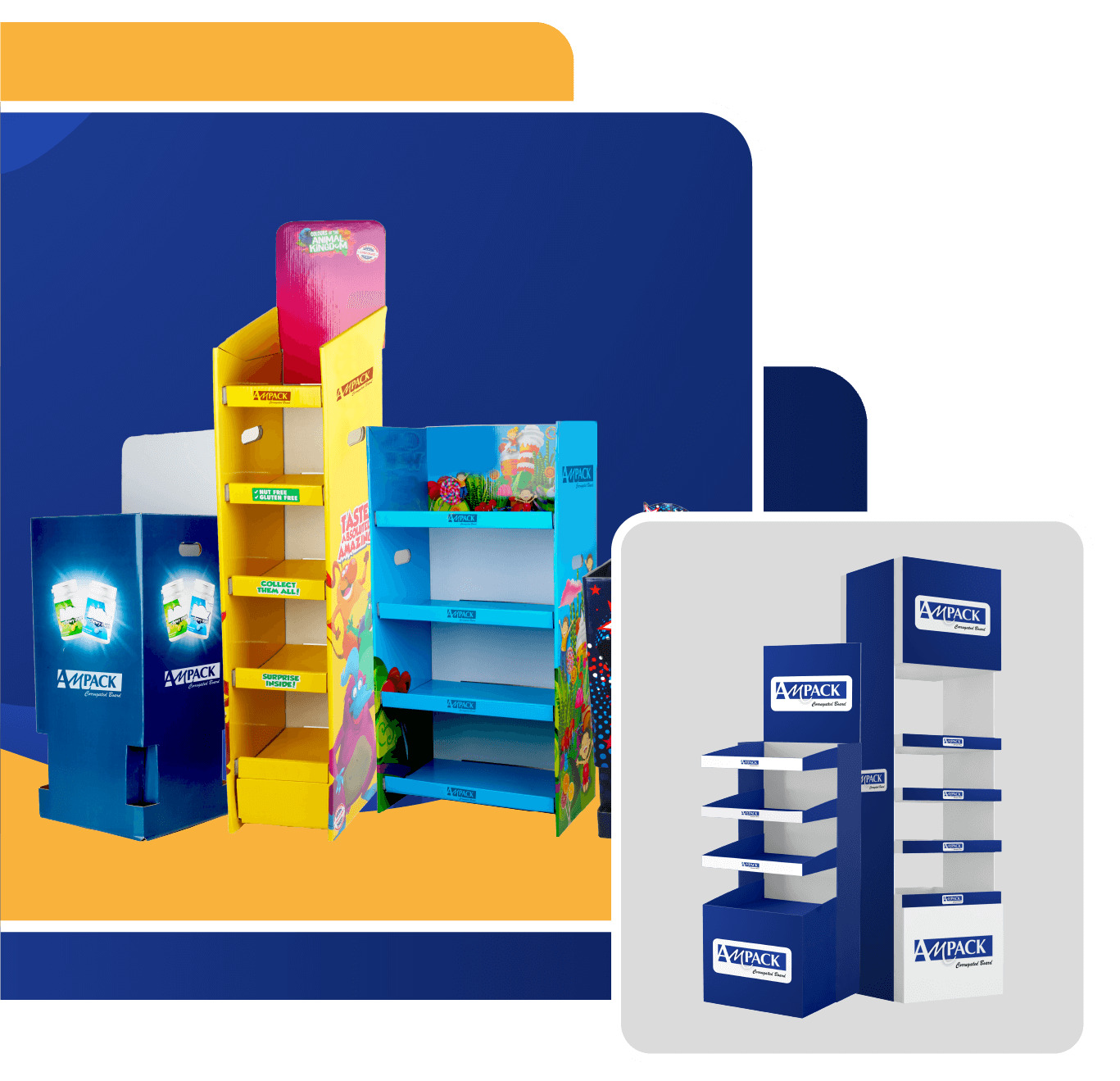 A corrugated box provides packing strength and stackability to your products by keeping them secure in all conditions. Ampack has emerged as Australia’s top supplier of supreme quality, cost-effective and durable retail display stands. We ship fully customisable cardboard display stands to Brisbane, Melbourne and all other areas of Australia.